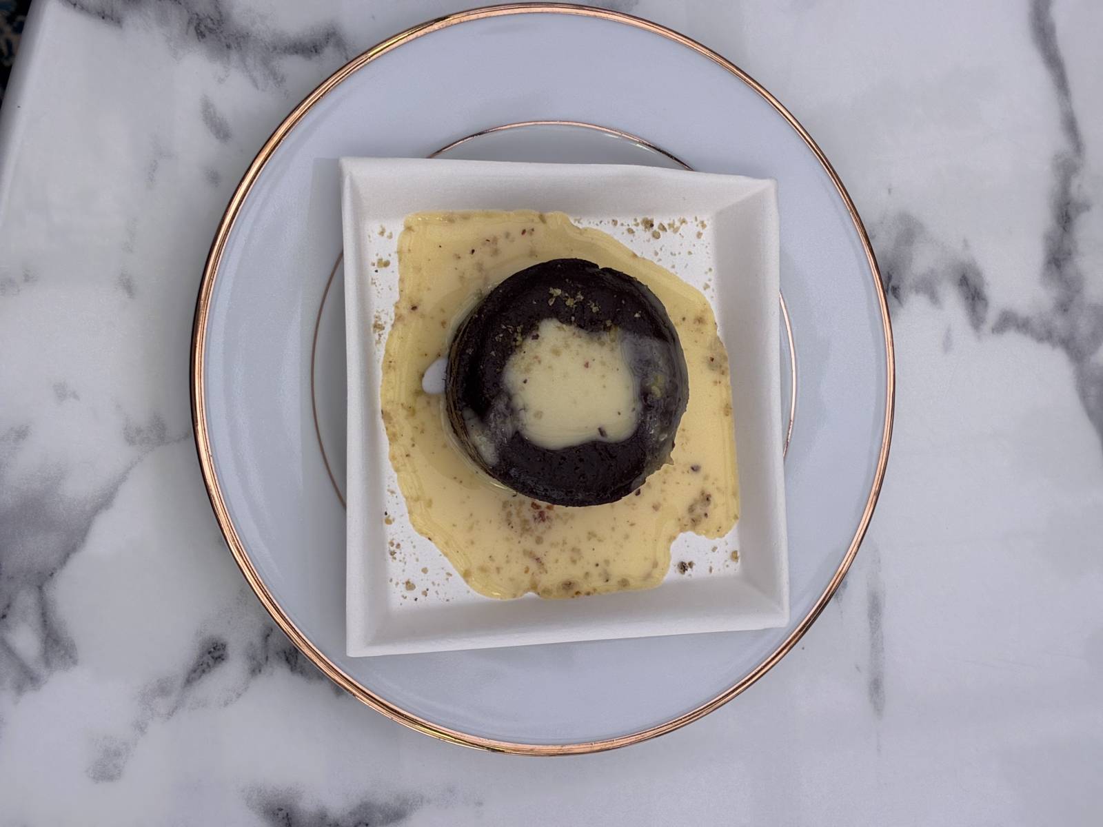 Enfin, terminez sur une note sucrée avec notre moelleux au chocolat, délicatement accompagné d’une crème anglaise maison. Une touche fondante et raffinée qui clôture ce repas avec élégance.