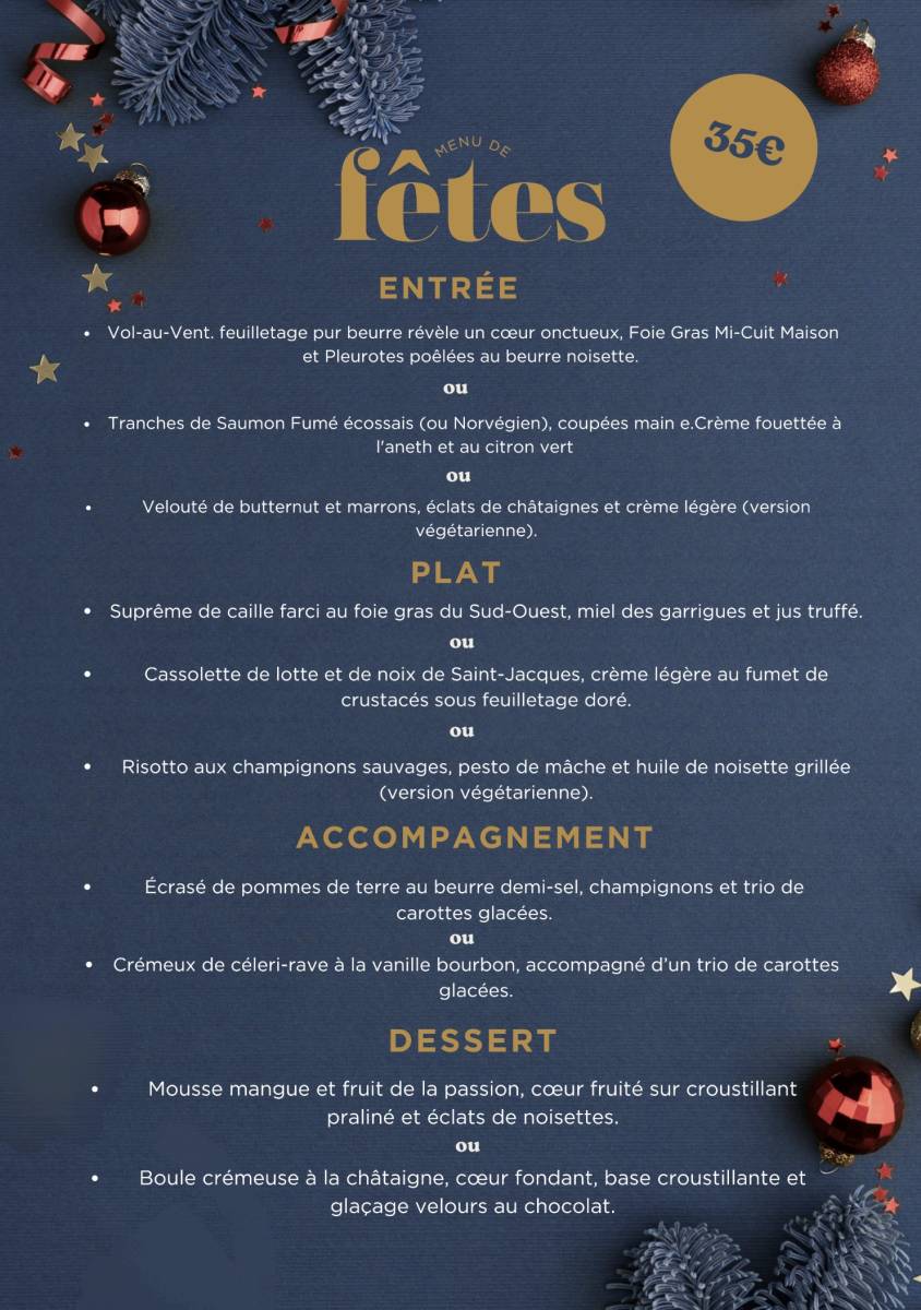 Cette année, notre menu de fêtes 2025/2026 met à l’honneur des saveurs festives et généreuses, pour le plaisir des yeux et des papilles.