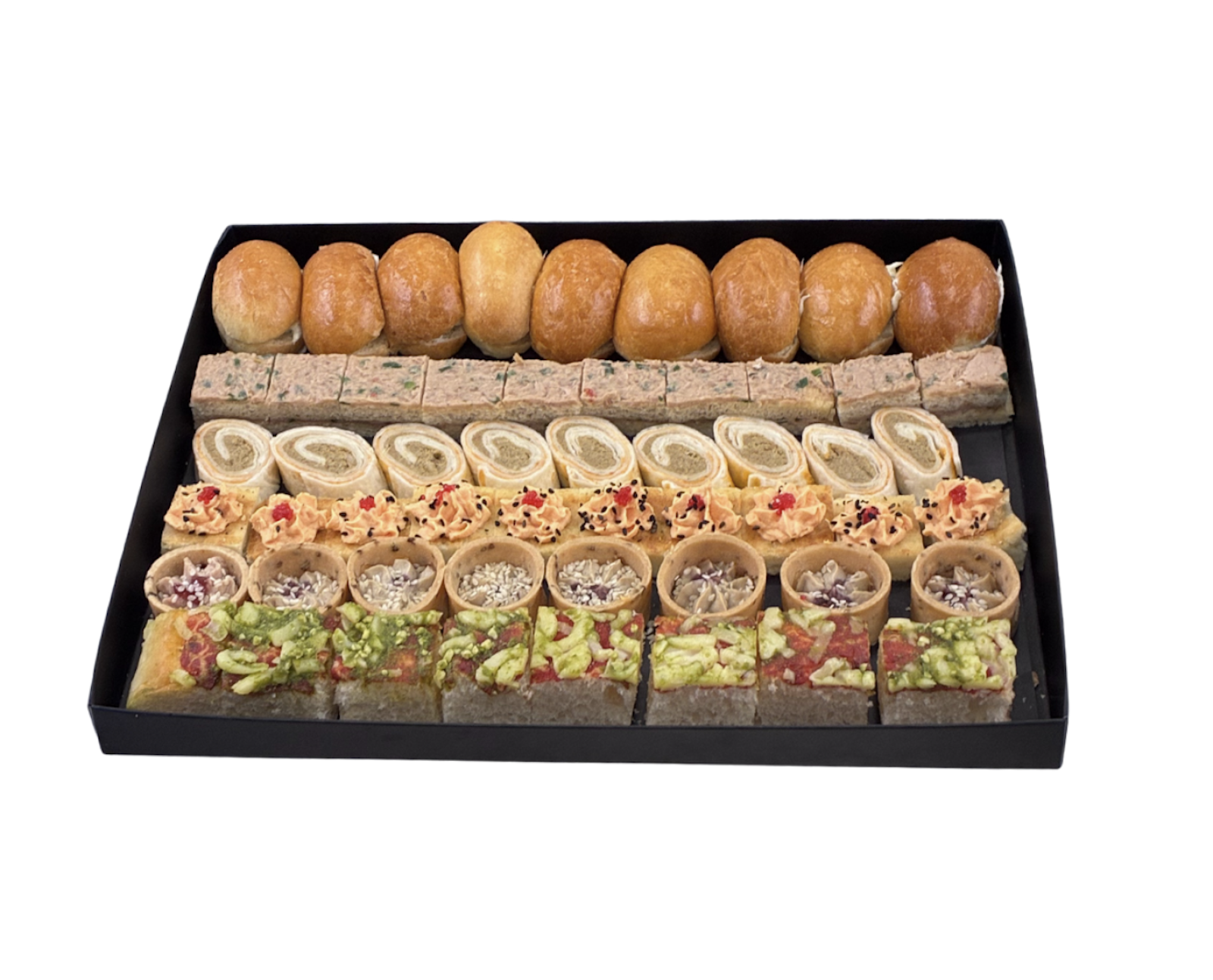 Composé de 60 pièces cocktail salées, ce plateau réunit une sélection de bouchées fines et savoureuses, pensées pour satisfaire tous les goûts.